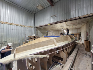 ✔️ Hull gelcoat, 1st skin, foam core, fibre reinforcements & 2nd skin done